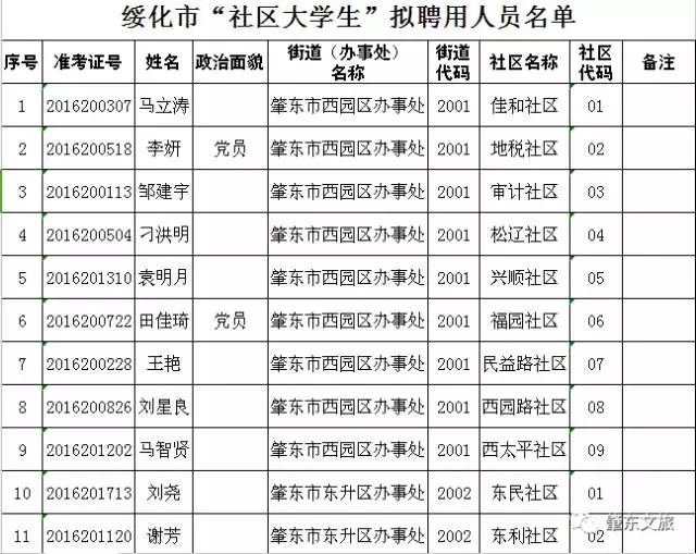 綏化市(肇東)“社區大學生”擬聘用人員公示