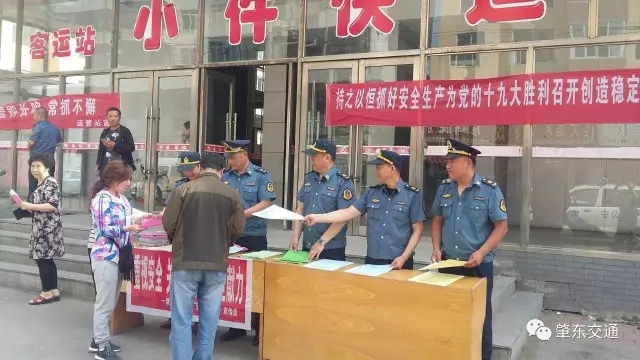 6月16日上午,按照交通運輸局黨委認真落實市委、市政府“安全生產月”和“安全生產龍江行”活動的工作部署,交通運輸局安全辦組織市公路管理處、道路運輸管理站、交通公安執勤室三家執法單位聯合開展“6-16”安全日宣傳活動。本次活動共出動執法宣傳車6臺,執法人員19人,在市區重點部位、人員密集場所、公交車上等懸掛安全標語共52條,在市客運總站門前設立宣傳臺一處,發放宣傳單1370份。