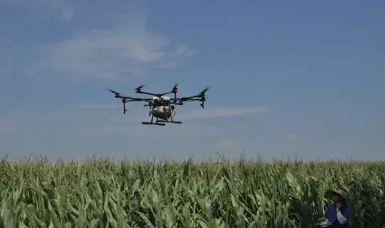 7月31日,肇東市洪河鄉(xiāng)英杰玉米種植合作社迎來無人植保機(jī)進(jìn)行飛防作業(yè)。隨著農(nóng)用無人植保機(jī)在操作飛手宋健的遙控下,將細(xì)霧般的藥液噴灑到農(nóng)作物各個層面,每小時作業(yè)量達(dá)55畝,作業(yè)效率是人工的60倍。