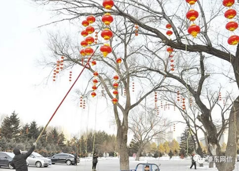 1月18日,肇東市群眾正在懸掛喜迎農歷新春佳節的紅燈籠,一串一串紅燈籠映紅了群眾的笑臉,既送來新年的祝福,又體驗了傳統民俗文化“扎根”血脈。