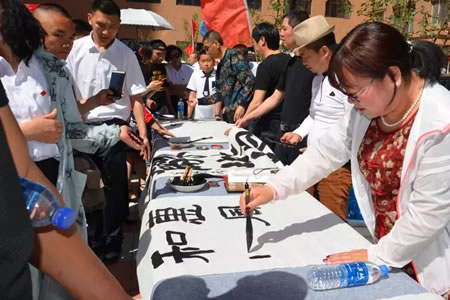 朝陽街道黨委書記劉增煥在鄰居節上做了精彩講話,他號召廣大社區群眾要緊緊圍繞在黨中央周圍,深入認識掃黑除惡專項斗爭工作的重要意義,積極營造團結向上、和諧友好的鄰居氛圍,唱響時代主旋律。隨后,社區群眾們載歌載舞,以舞蹈、合唱、詩朗誦等多種藝術形式謳歌新時代,歌唱偉大的黨、偉大的祖國。大合唱《我和我的祖國》、《走進新時代》令人心潮澎湃;詩郎誦《讀中國》、少兒舞蹈《棒棒糖》深受觀眾喜愛,獲得陣陣掌聲;華能熱力公司工作人員表演的男女生二重唱《十送紅軍》、小合唱《保衛黃河》、《四渡赤水出奇兵》仿佛又將我們帶到了那個戰火硝煙的年代;書法愛好者現場揮毫創作,表達對黨和祖國的深深愛戴和祝福之情。活動中,朝陽街道黨委全體黨員重溫入黨誓詞,并為優秀黨員、優秀志愿者頒發獎品,向現場書法表演人員頒發紀念品。此外,華能熱力有限公司還現場捐助了10名貧困黨員。在活動尾聲,抽取了五十名幸運觀眾頒發了紀念品。