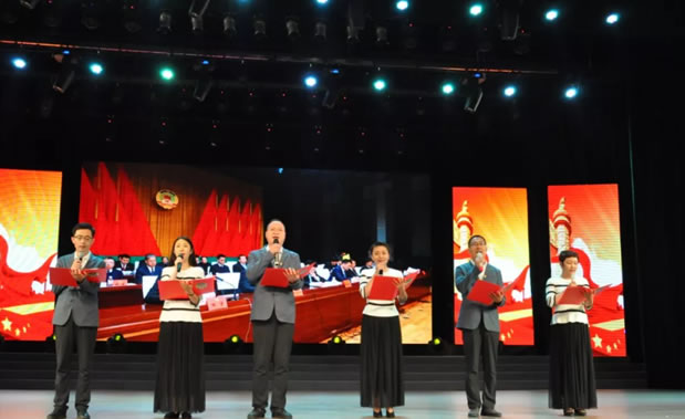 隨后,朗誦會正式開始。一聲聲詞句深情飽滿、一件件歷史蕩氣回腸,朗誦會在全體市委常委的詩朗誦《中國夢》中拉開帷幕。市委常委們的朗誦時而激情豪邁、時而深沉含蓄,字字鏗鏘有力,他們用振奮人心的話語和緬懷革命先烈的詩詞回顧和謳歌了建黨98周年、新中國成立70周年來的滄桑巨變與光輝歷程,又充分展現(xiàn)了立足新時代下,廣大甜城兒女在市委的堅強(qiáng)領(lǐng)導(dǎo)下,邁著堅定有力的步伐,向著實現(xiàn)中華民族偉大復(fù)興的中國夢、兩個“一百年”奮斗目標(biāo)奮勇前行的使命和擔(dān)當(dāng)。