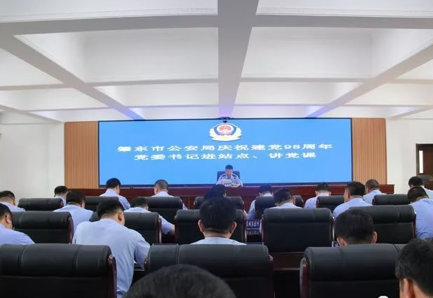 為紀(jì)念黨的98周年華誕,進(jìn)一步增強(qiáng)黨組織的凝聚力和戰(zhàn)斗力,激勵(lì)基層黨組織和廣大黨員民警繼承和發(fā)揚(yáng)黨的光榮傳統(tǒng),增強(qiáng)黨性意識,凝聚智慧力量,充分發(fā)揮黨員民警在公安事業(yè)中的先鋒模范作用,7月1日,肇東市公安局舉辦慶祝建黨98周年黨委書記進(jìn)站點(diǎn)、講黨課活動(dòng)。局長張國輝為全局黨員民警作了《不忘初心聽黨話,牢記使命跟黨走,全力為肇東全面振興全方位振興創(chuàng)造安全穩(wěn)定環(huán)境》專題黨課輔導(dǎo)。局黨政班子成員、基層科所隊(duì)長聆聽講座。