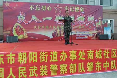 7月30日,朝陽街道辦事處南城社區的黨員干部及志愿者們來到市武警中隊舉辦了“慶八一、迎國慶”慰問演出。