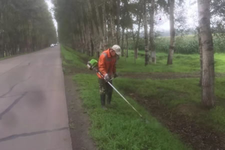 作業(yè)采用機(jī)械、人工相結(jié)合的方式進(jìn)行,養(yǎng)護(hù)工人嚴(yán)格按照路肩養(yǎng)護(hù)技術(shù)規(guī)范,密切配合,重點(diǎn)對(duì)路肩、邊坡、排水溝的蒿草和雜物進(jìn)行修剪和清除。