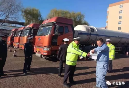 為進一步加強冬季道路交通安全管理,全力以赴做好道路交通事故預防工作,10月31日,肇東市公安局交警大隊聯合市運管站開展“兩危一客”企業車輛安全大檢查活動,交警大隊副大隊長于文禮帶領客運中隊參加聯合檢查行動。